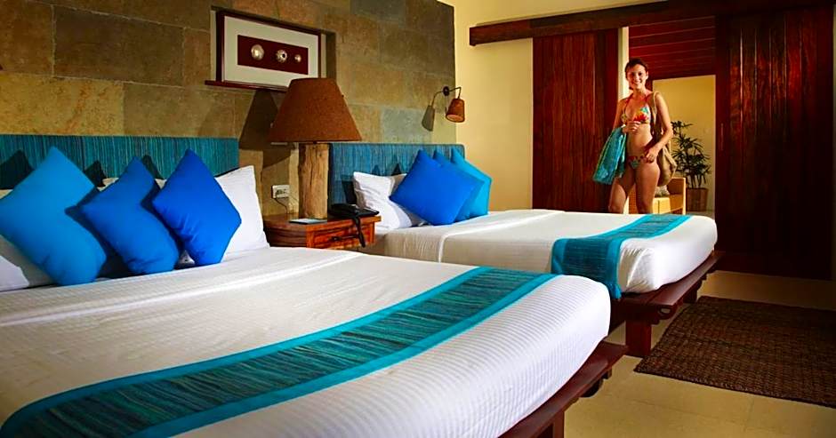 Featuring lagoon and ocean views, this spacious two-bedroom villa comes with a veranda and private plunge pool.