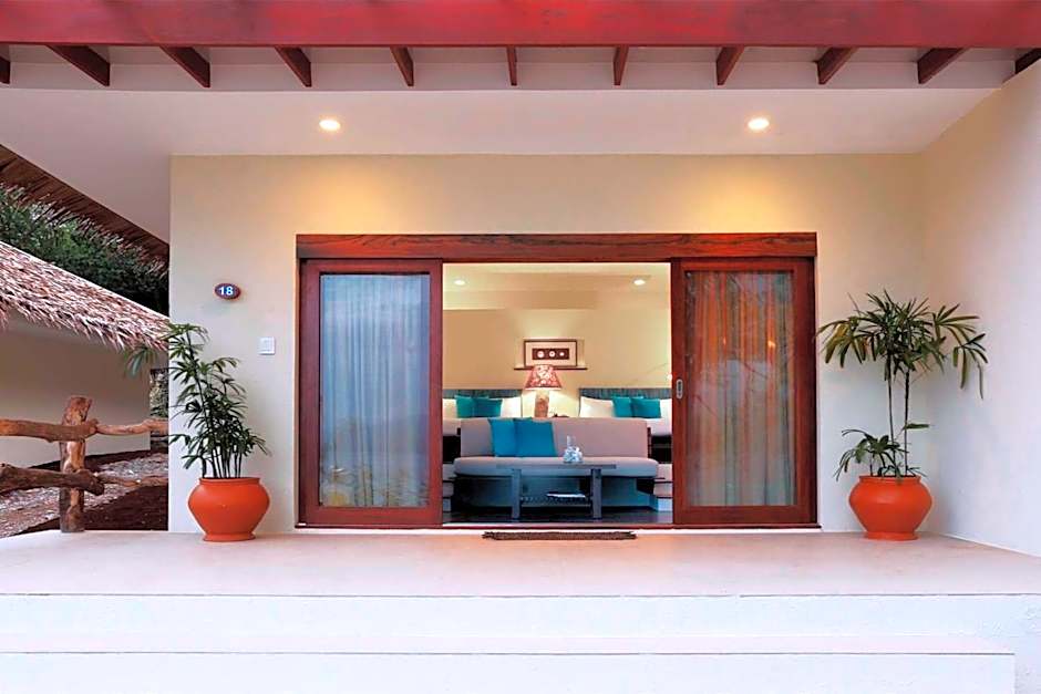 Featuring lagoon and ocean views, this spacious two-bedroom villa comes with a veranda and private plunge pool.